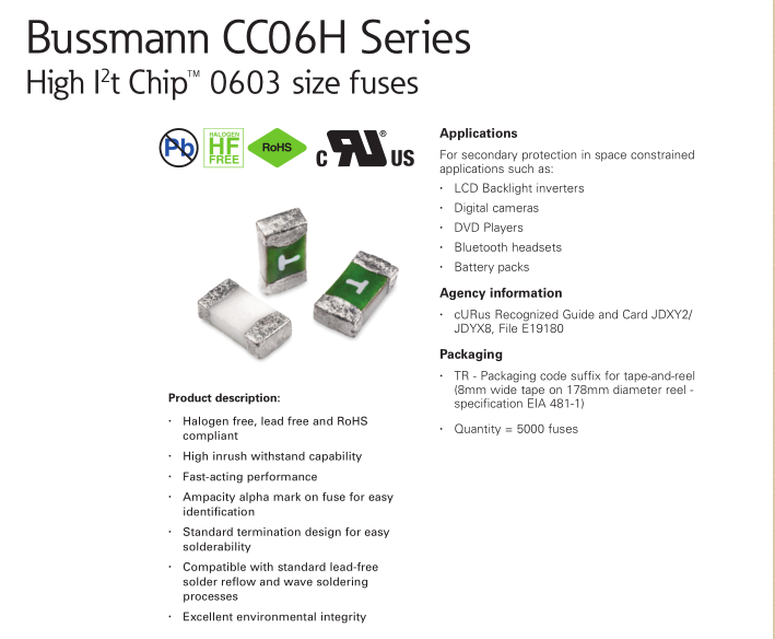 CC06H 0603 bussmann 0603系列產(chǎn)品介紹: