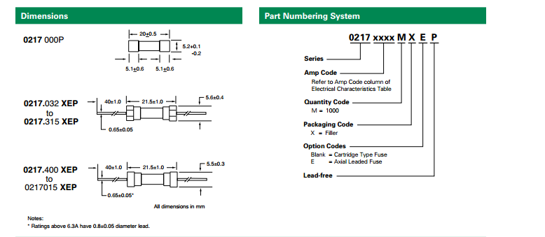 符合IEC 60127-2 (標準手冊2)對快熔型保險絲的規格要求可提供管式或軸向引|線型號