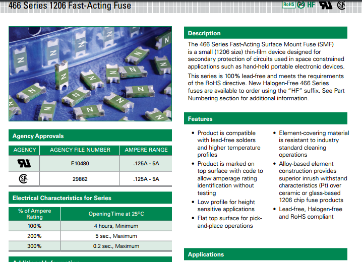 力特保險絲466 系列 - SlimLine無鉛無鹵素1206特快熔斷薄膜保險絲: