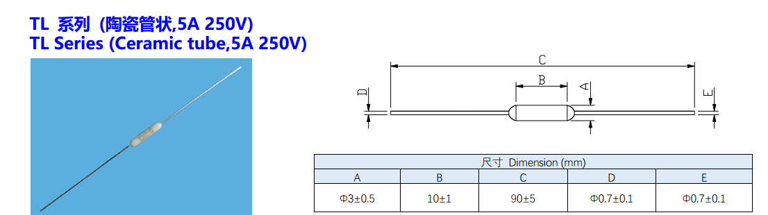 陶瓷溫度保險(xiǎn)絲:TL 系列 (陶瓷管狀,5A 250V
