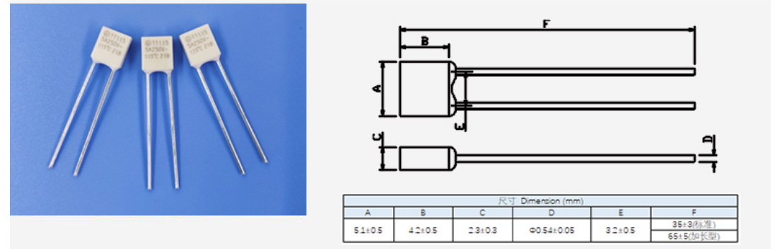 方形溫度保險(xiǎn)絲:TK 5.1X2.3X4.2 1A250V
