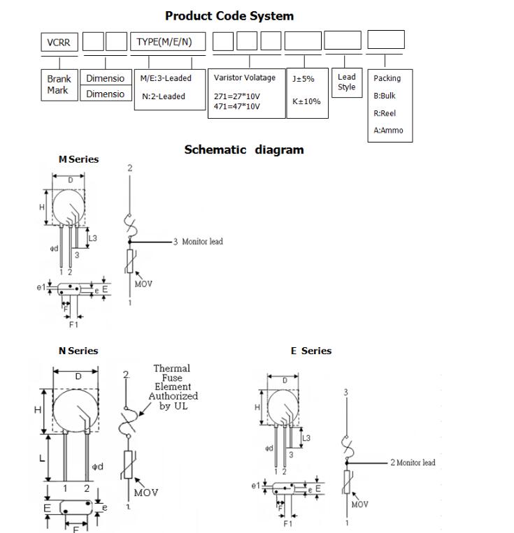 ?壓敏電壓從(18V-1800V) ?具有UL ,TUV認證,符合RoHS,Reach標準,無鉛 ?專利的集成熱保護裝置 - ?旨在促進符合UL1449第3版SPD產品 ?和促進符合IEC62368 ,IEC61643-331產品 ?高峰值浪涌電流額定值高達10kA ?波可焊 ?標準引線形式和間距選項 ?低泄漏 ?-55°C至+ 85°C的工作溫度范圍