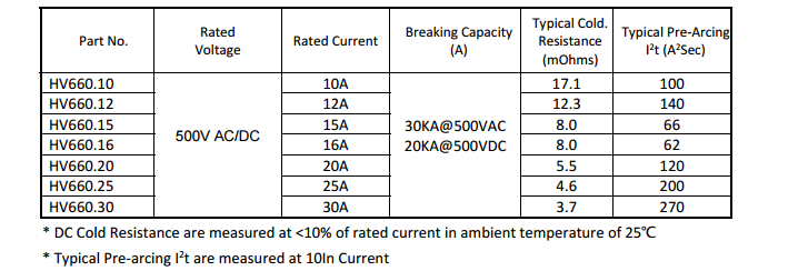 ? Fast Acting, high breaking capacity under 500VAC/DC