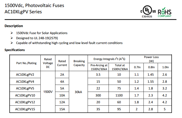 AgPV Series1500Vdc, Photovoltaic Fuses介紹: