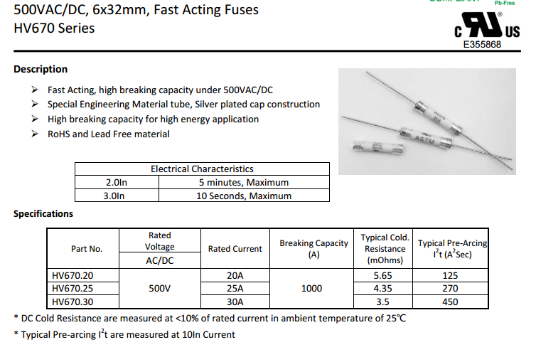 ? Fast Acting, high breaking capacity under 500VAC/DC